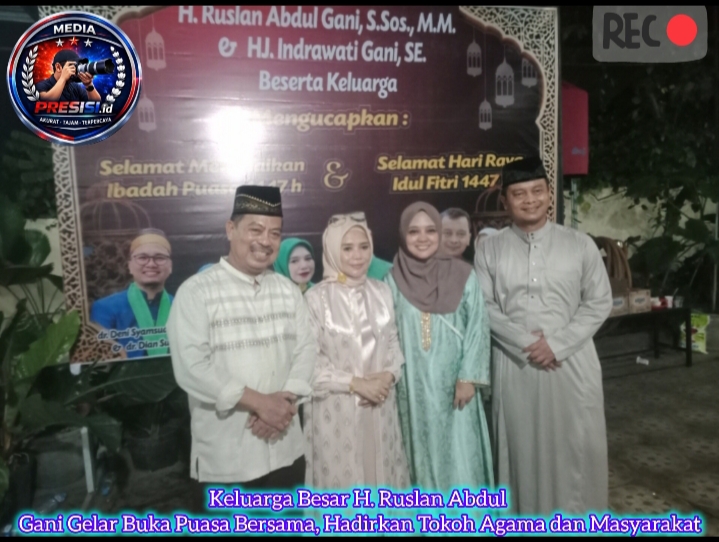 Bitung, Sulut | Mediapresisi.id — Buka puasa bersama keluarga Besar H. Ruslan Abdul Gani. Dan didampingi menantunya Letkol Inf Ade Rohmat Wahyudin, S.IP., M.HI., M.Sc., Dr. Rezky K.Rusida Gani Terselenggaranya kegiatan buka puasa bersama keluarga besar Hj.Ruslan Abdul Gani Sabtu, 7 Maret 2026 ,menjadi perhatian publik dimana sebagian umat Islam yang ada di kota Bitung turut serta dalam kegiatan Bukber yang dilaksanakan di kediaman Hj.Ruslan Abdul Gani.