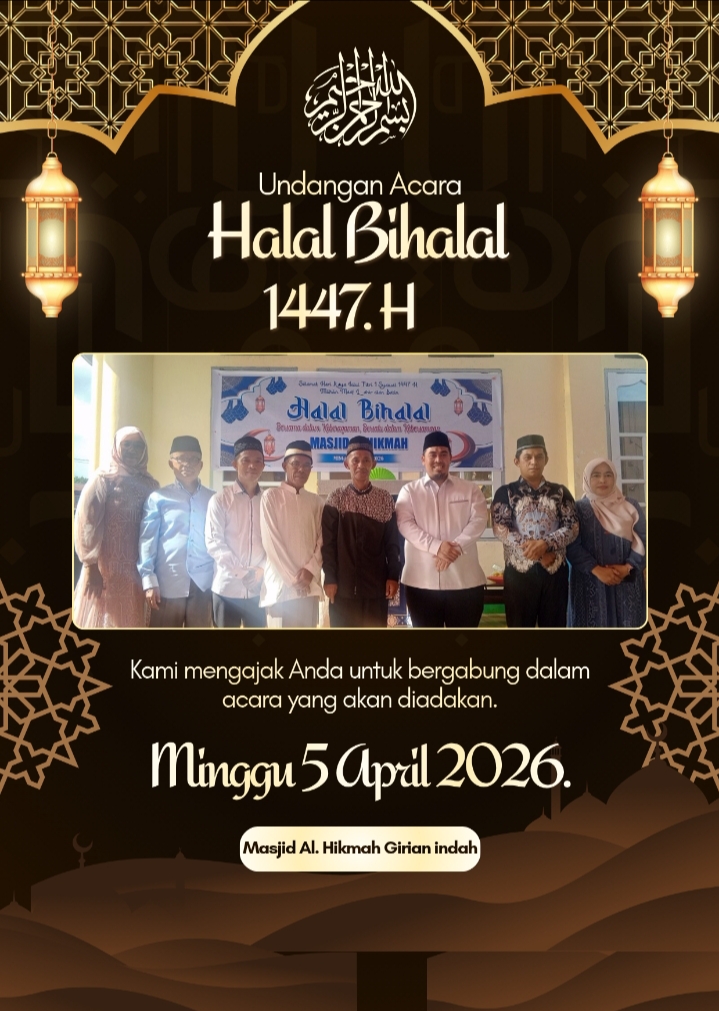 Dengan demikian, acara Halalbihalal di Mesjid Al-Hikmah Girian Indah (Mangga Dua) dapat berjalan lancar dan sukses, serta dapat mempererat tali silaturahmi dan kebersamaan masyarakat. Tutupnya,”