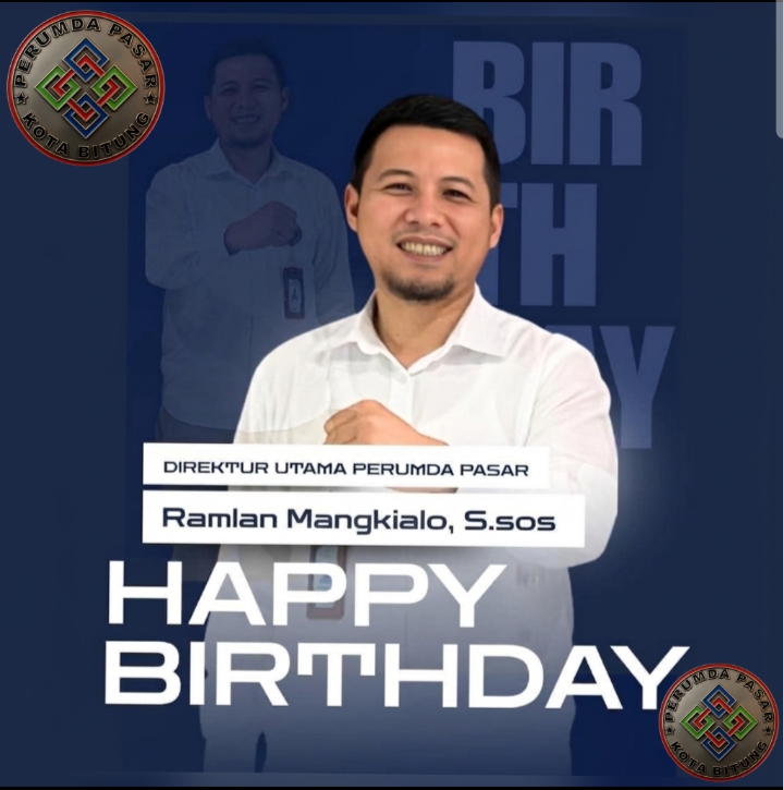 Bitung, Sulawesi Utara – Keluarga besar Perumda Pasar Kota Bitung mengucapkan selamat ulang tahun yang ke-35 kepada Direktur Utama, Ramlan Mangkialo, S.Sos. Ulang tahun ini menjadi momen spesial bagi keluarga besar Perumda Pasar Kota Bitung untuk mengapresiasi kontribusi dan dedikasi beliau dalam memimpin perusahaan.