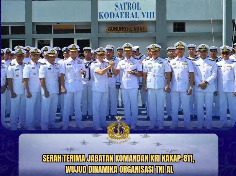 Bitung, Sulawesi Utara – Mediapresisi.id —  Tongkat komando KRI Kakap-811 resmi berganti. Serah terima jabatan Komandan KRI Kakap-811 dipimpin langsung oleh Komandan Satuan Kapal Patroli (Satrol) Kodaeral VIII, Kolonel Laut (P) Marvill Marfel Frits, E.D., S.E., http://M.Tr. Hanla., CRMP.